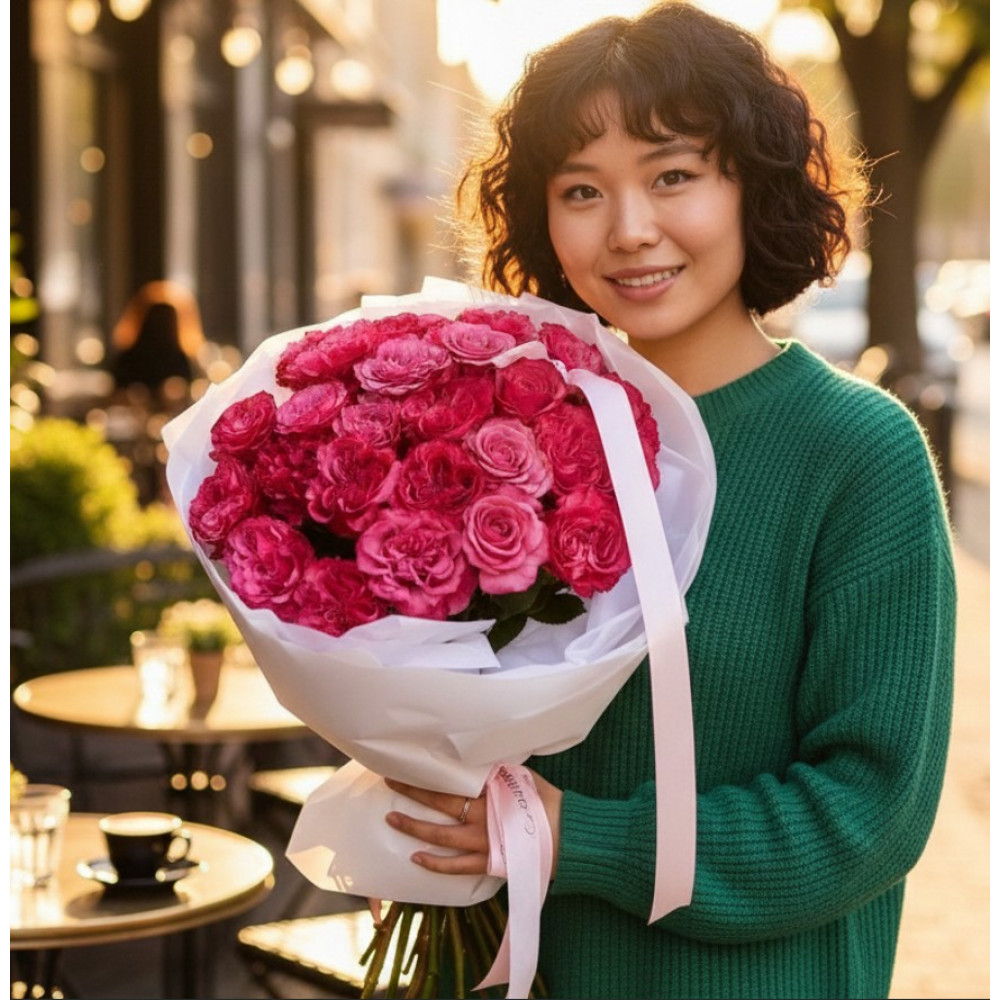 Дорогие клиенты, хотим Вам сообщить, что каждая наша композиция индивидуальна, и каждый наш флорист вкладывают душу в собранные им композиции, и букета в точь в точь не бывает. в зависимости от сезона и наличия цвета букет может отличаться до 30%